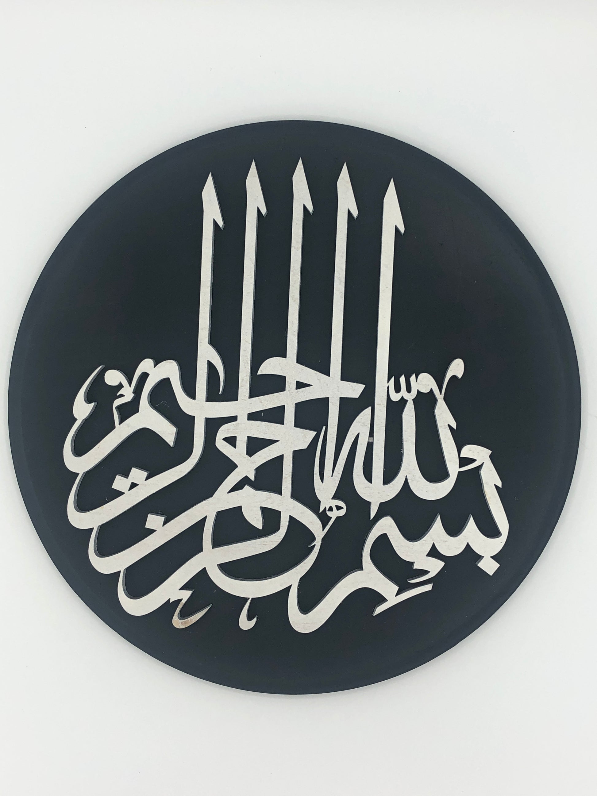 Elevate your space with this stunning Bismillah Calligraphy Wall Hanging, a timeless piece that brings spiritual elegance to any room. Measuring 12 inches in diameter, this round artwork features exquisite Islamic calligraphy rendered in meticulous detail. Available in a variety of colors, you can select the perfect shade to complement your décor and personal style. Whether displayed in your living room, bedroom, or prayer space, this wall hanging serves as a meaningful reminder of faith while adding sophisticated visual interest to your walls. The carefully crafted design makes it an ideal gift for those seeking to infuse their home with cultural beauty and spiritual significance. Transform your interior with this versatile, conversation-starting piece that celebrates Islamic artistry.