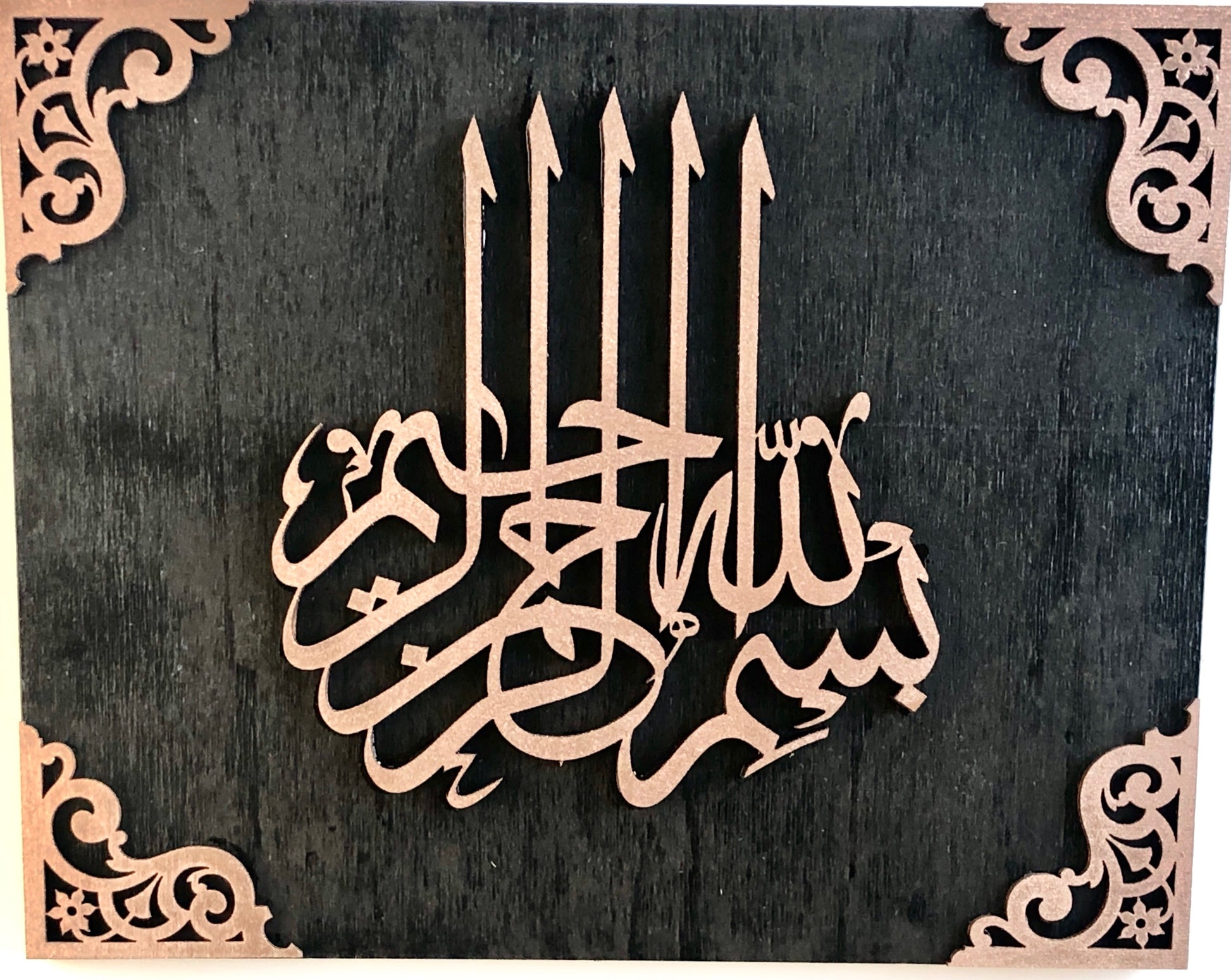 Transform your space with this exquisite Bismillah wall hanging, a handcrafted wooden masterpiece that brings together artistry and spiritual meaning. Each piece is meticulously hand-painted in rich black and bronze tones, creating a luxurious aesthetic that elevates any room's ambiance. The natural warmth of wood combined with the sophisticated color palette makes this wall art a versatile addition to modern, traditional, or eclectic interiors. This isn't mass-produced décor—it's a carefully crafted piece that reflects quality craftsmanship and attention to detail. Whether displayed in your bedroom, living room, or prayer space, this Bismillah hanging serves as a beautiful daily reminder of your faith while adding an artistic focal point to your walls. Invest in a piece that honors your beliefs and showcases your appreciation for handmade, meaningful home décor that truly stands out.