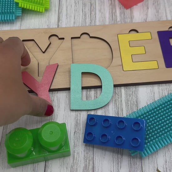 Introduce your child to the joy of personalized learning with this custom name puzzle. Each piece features colorful letters that spell out their unique name, making letter recognition and spelling practice feel like playtime. Perfect for developing fine motor skills and hand-eye coordination, this engaging puzzle keeps young learners entertained while building confidence. Watch as your child proudly completes their very own name, creating a keepsake they'll treasure for years to come. An ideal gift that combines education with personalization.