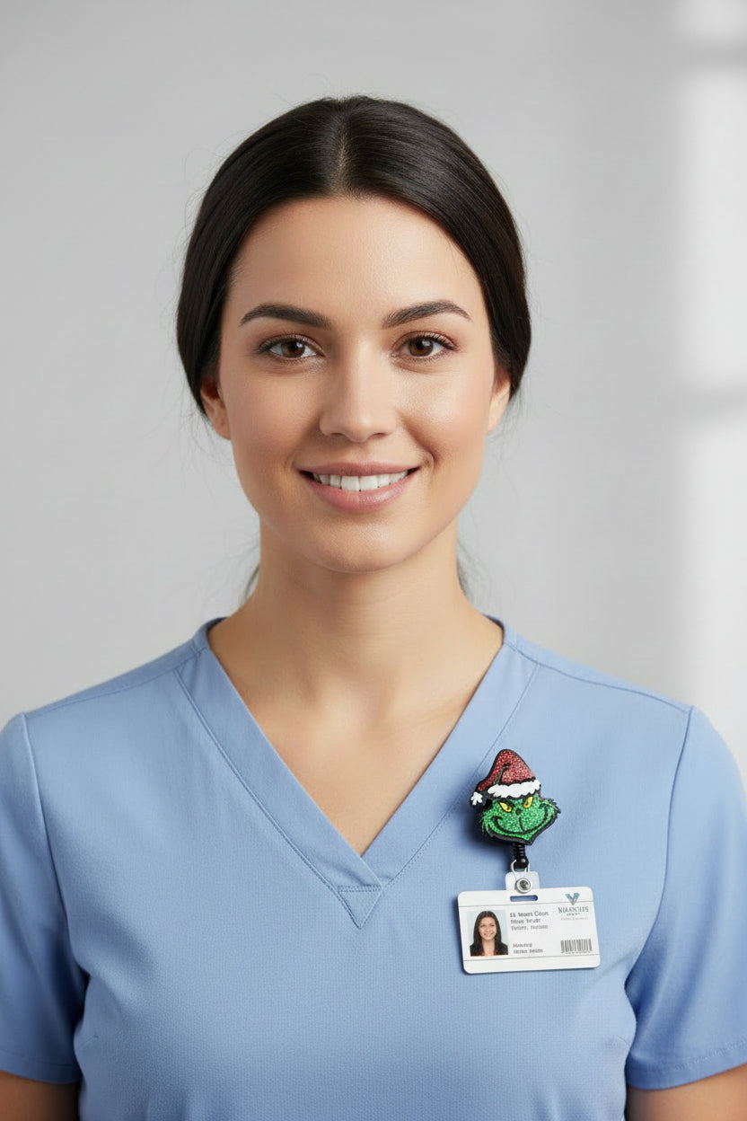 Bring a mischievous grin to your workspace with this delightful Grinch badge reel. Perfect for the holiday season and beyond, this charming accessory lets you wear your favorite curmudgeon with pride. Whether you're a healthcare hero, educator, or office dweller, this playful reel adds instant personality to your uniform or scrubs. The sturdy retractable mechanism keeps your ID secure while the eye-catching Grinch design sparks smiles and conversations. Celebrate the season with a touch of green-furred humor that's sure to brighten even the grumpiest days.